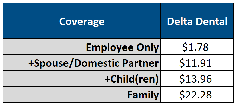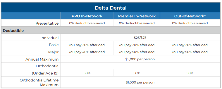 NEW for 2023, we are offering a dental plan to all eligible employees through Delta Dental. While you can visit any licensed dentist, your cost is lower when you visit a dentist in the Delta PPO or Premier network. Our carrier pays based on their fee schedule to out-of-network dental providers, so you could see a balance bill for any service provided by an out-of-network provider including preventive care.